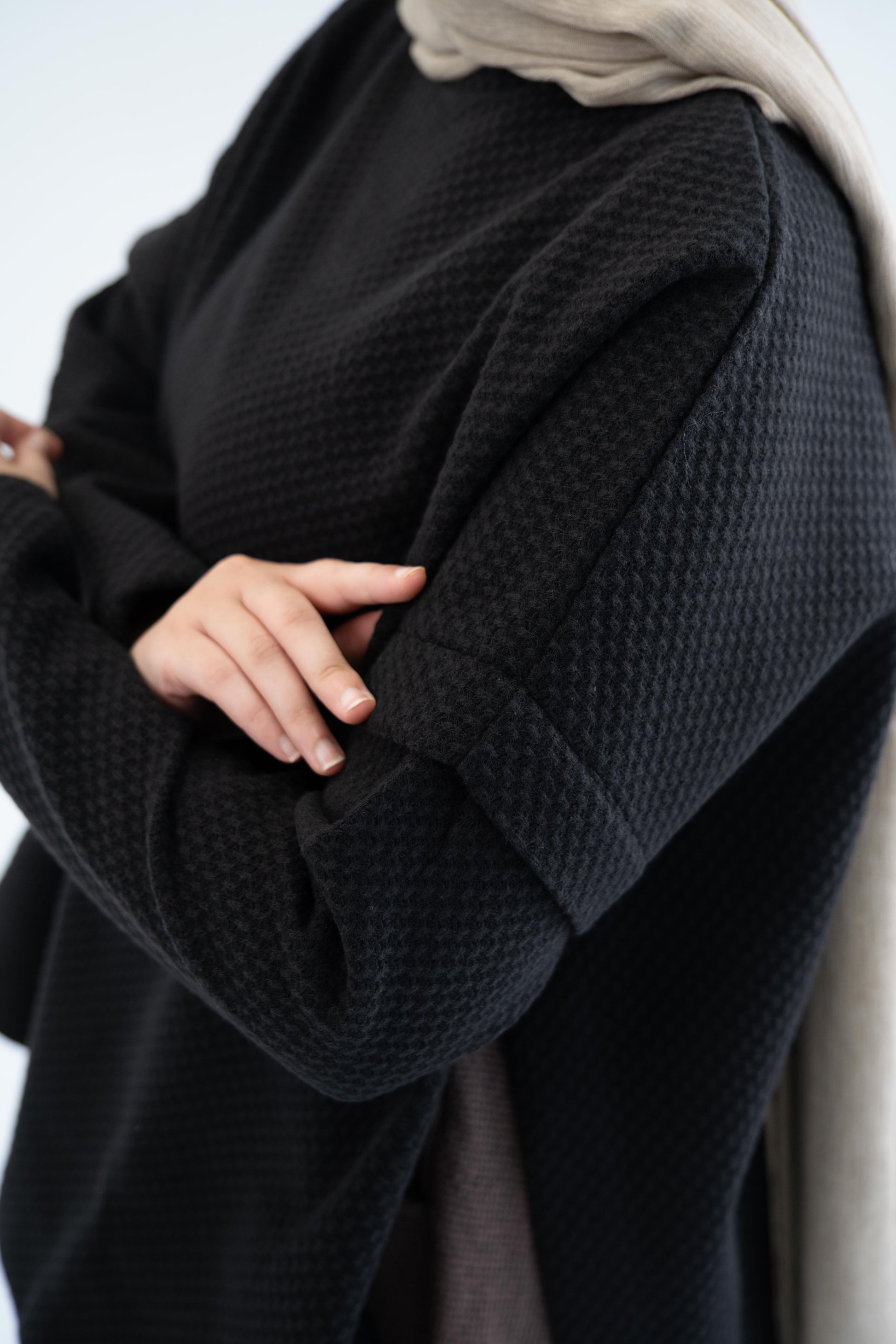 Discover effortless warmth with the Hush Poncho. Designed with open sides for easy layering, this cozy tricot piece drapes beautifully over your favorite outfits.