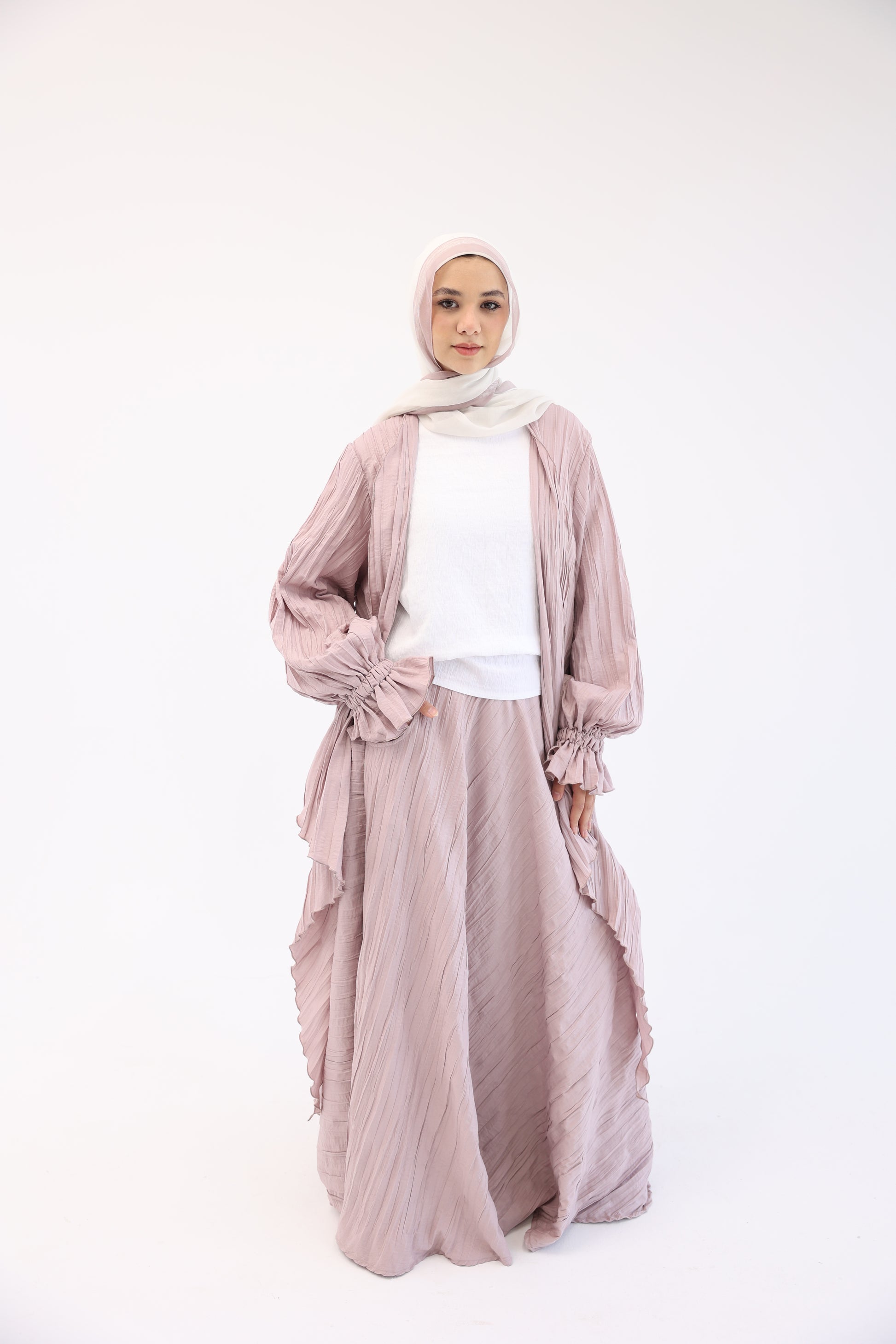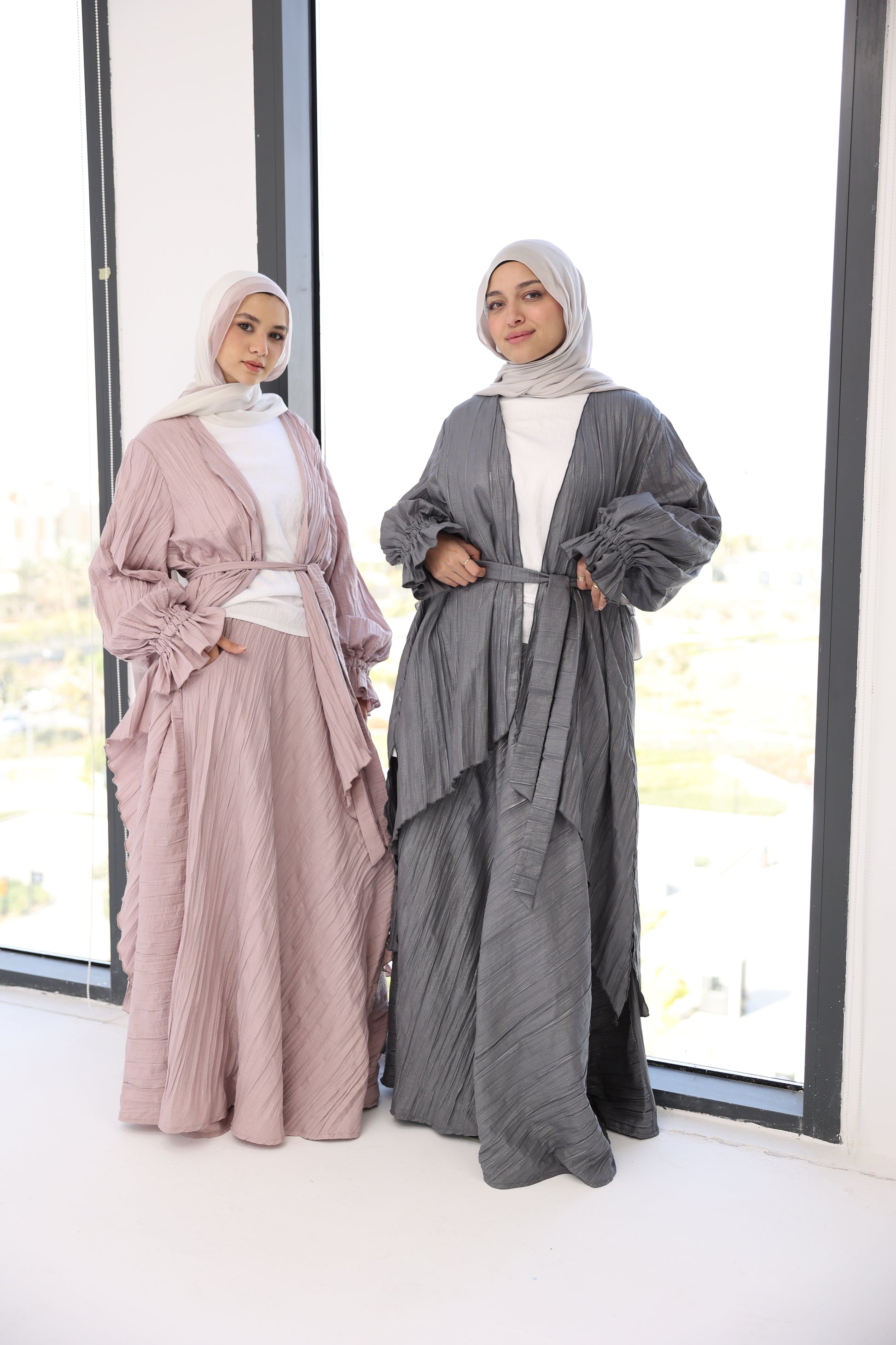 The Moon Veil Set brings together two essential pieces in one stunning collection. This two-piece includes a shimmering cardigan and a flowing skirt, both crafted from soft crushed fabric that moves beautifully with you. The classy design works for any occasion—dress it up or keep it casual. Simple, elegant, and effortlessly chic.