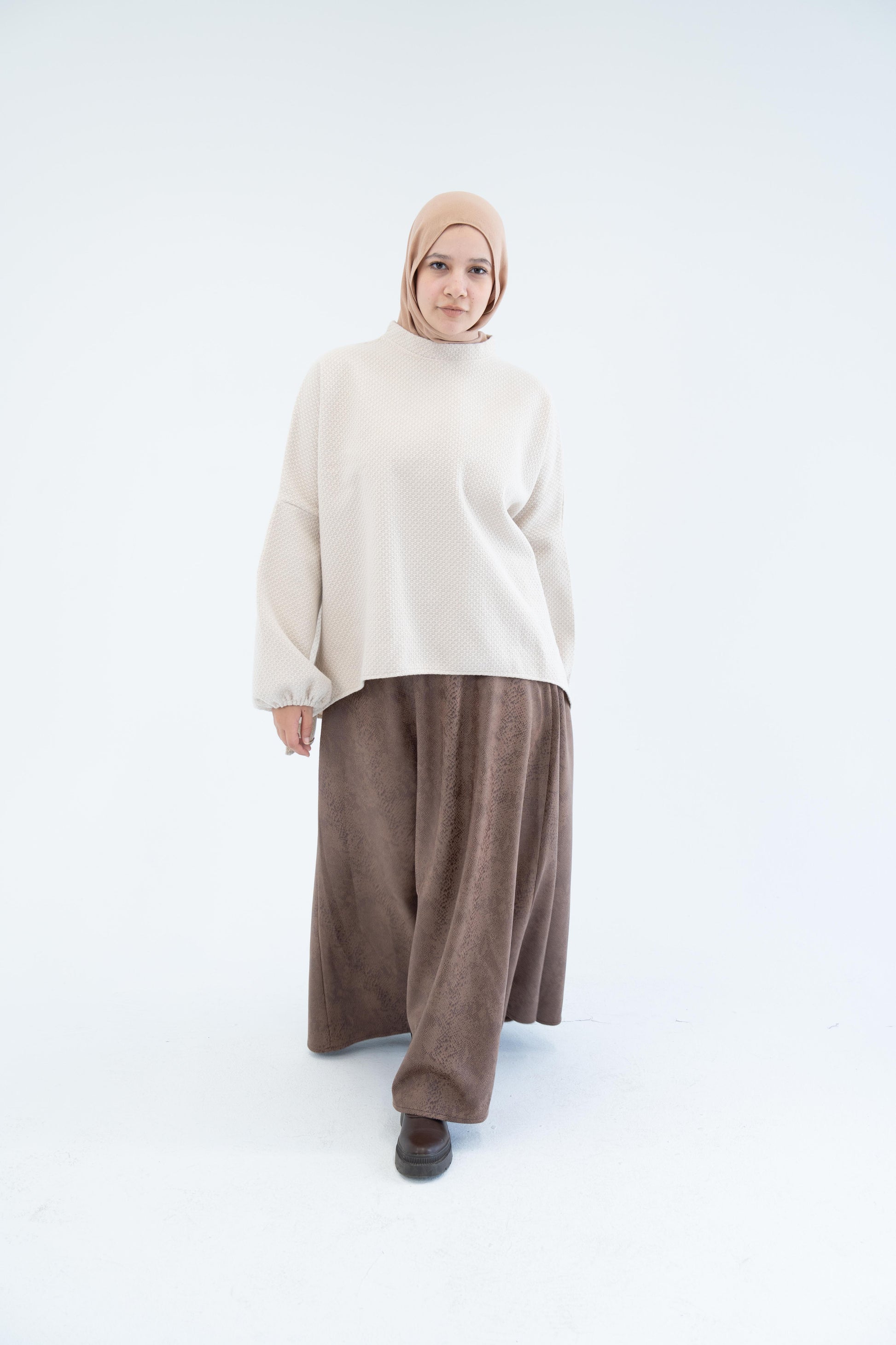 Beautiful Suede leather skirt that feels smooth and looks classy. Wear it anywhere—work, dinner, or casual outings. A simple piece that goes with everything.