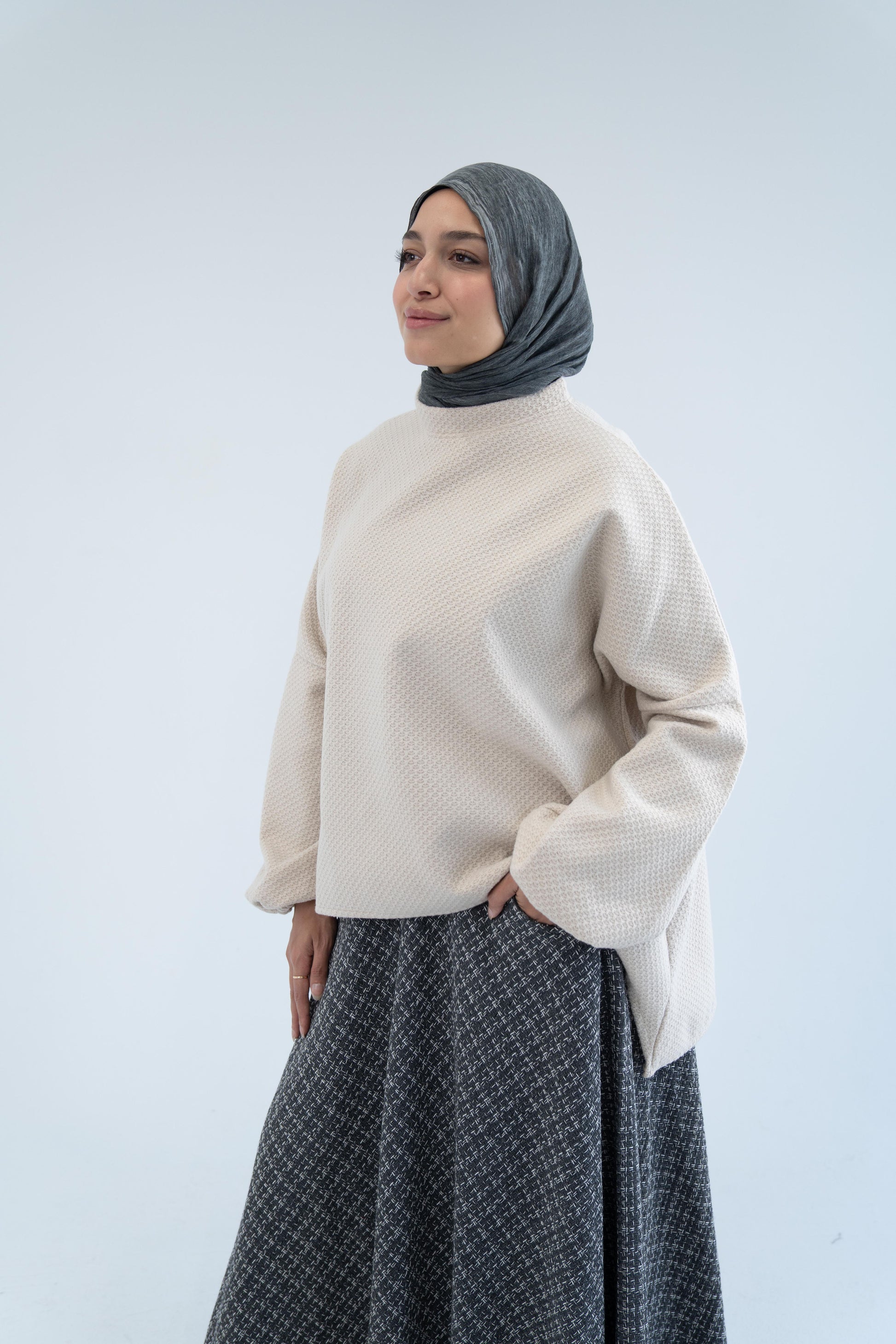 The Vienna Knighted Blouse is easy to love. Pull it on and feel the softness wrap around you. The oversized fit is comfortable and flattering, while the knit fabric keeps you warm without feeling heavy.